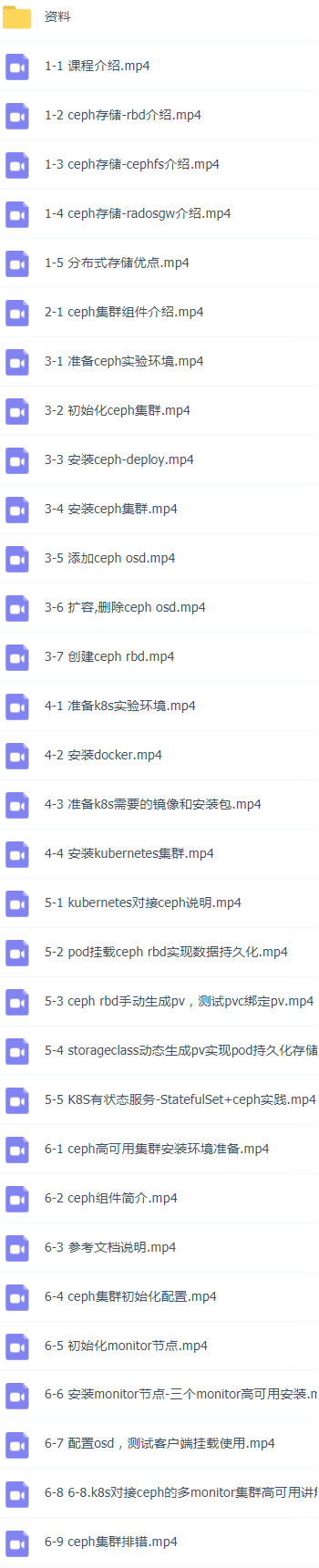 第20套:k8skubernetes安装使用+ceph实现后端持久化存储视频教程