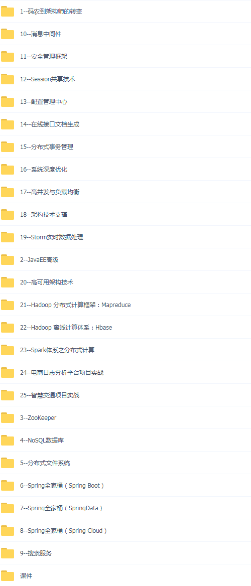 第01套:【高端架构】JavaEE企业级分布式高级架构师018期(百度T6-T7)一线大型互联网公司架构师技术总监授课