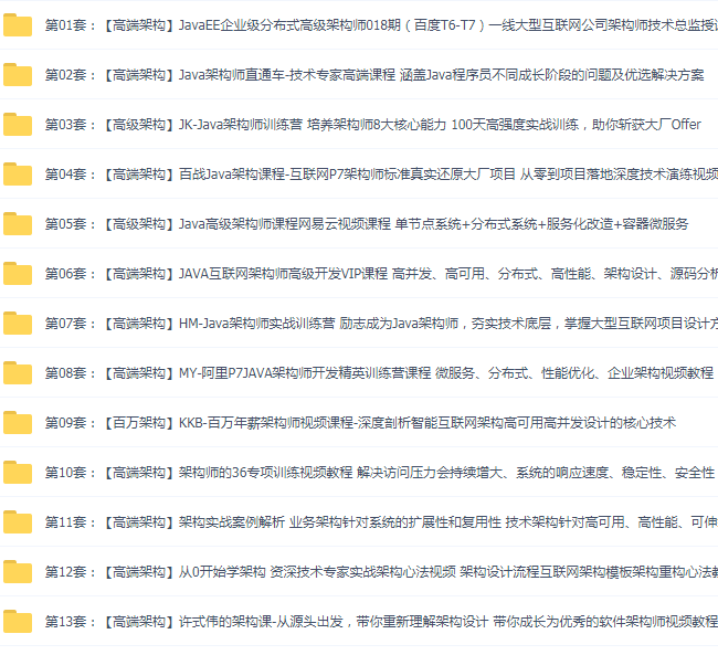 13套Java互联网架构师高级项目实战训练营VIP课程,深度对标阿里P6,P7,P8腾讯T8,T9百度大厂百万年薪架构师视频教程
