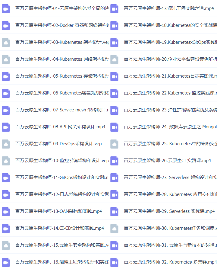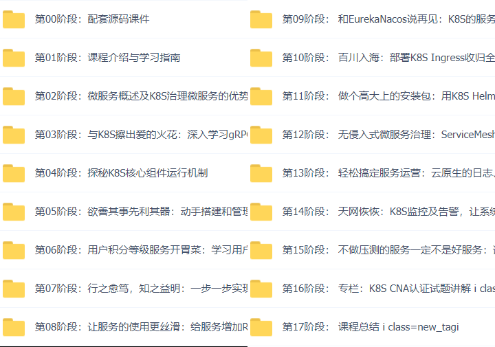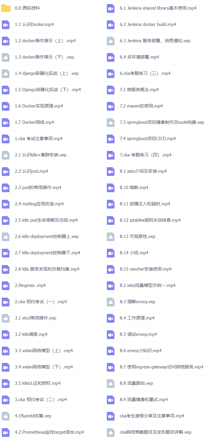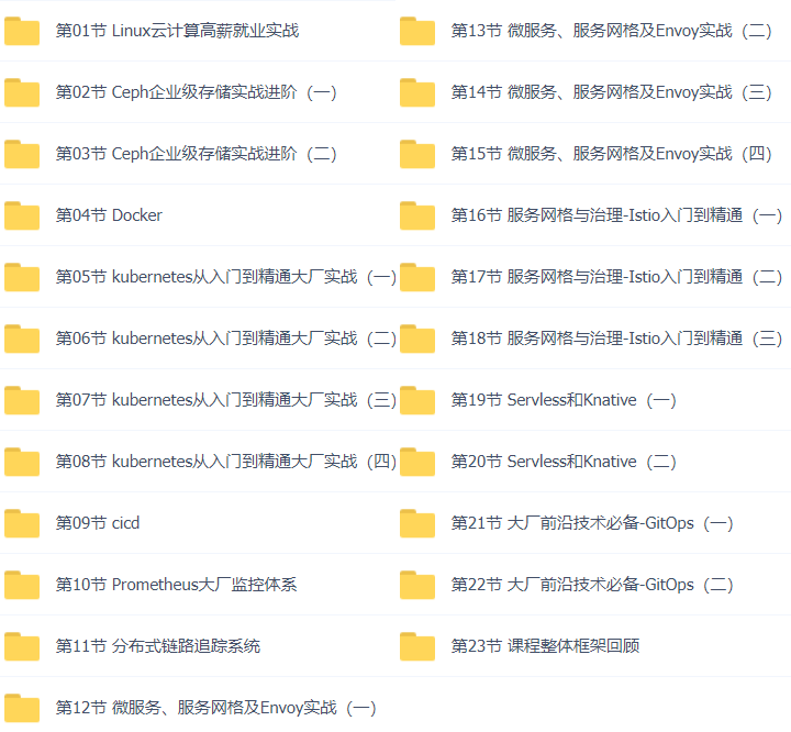 总目录46套K8s云原生实战训练,挑战年薪50万(K8s+Docker+DevOps+Jenkins+CICD+Git+Istio+Service Mesh)云计算,微服务,容器架构师,全栈架构师,集群实战,部署落地,服务治理,服务网格,原理剖析,实战应用,云原生架构,CKA认证实战班,平台设计与开发视频教程