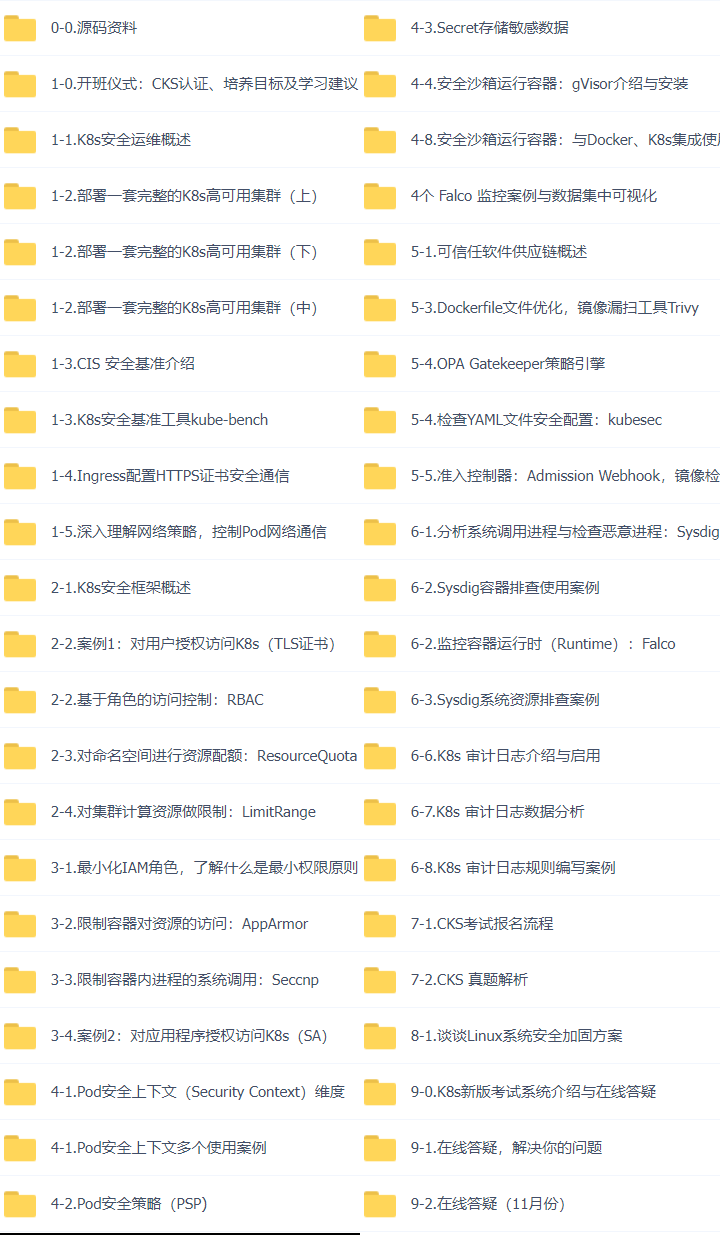 第16套:KubernetesK8s CKS 认证实战班-架构+网络+存储+安+监控+日志+QCD视频教程