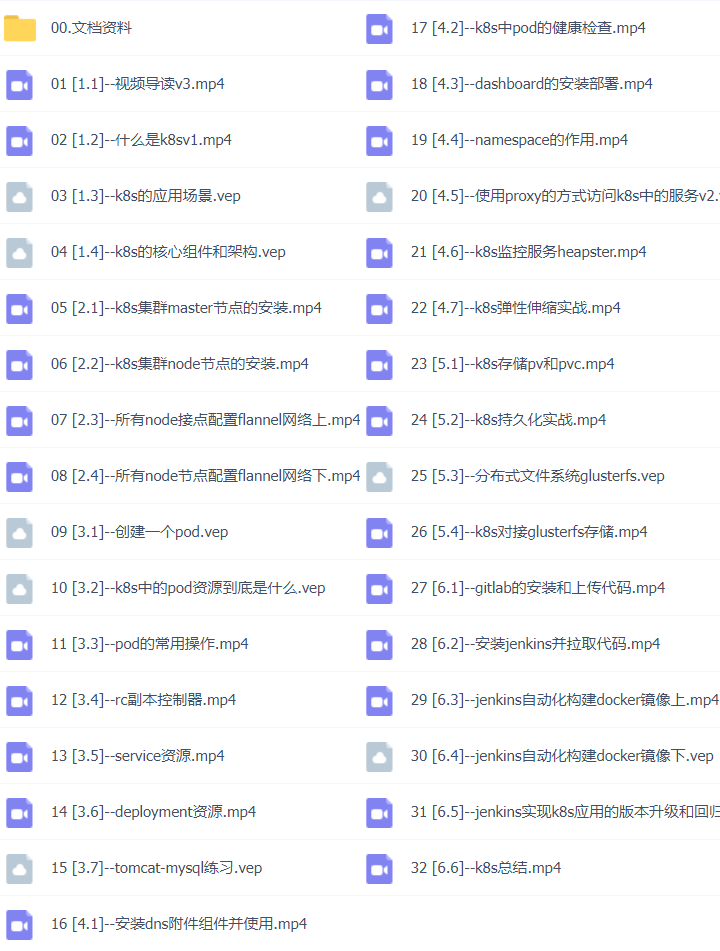 技术包含:46套K8s云原生实战全栈工程师课程K8s/Docker/DevOps/Jenkins/Ceph/Prometheus/Kubershere/CICD/Istio/Linux/Service Mesh/cka/cks/Serverless,Prometheus二次开发,云计算,微服务,容器架构,全栈架构,集群实战,部署落地,服务治理,服务网格,原理剖析,实战应用,云原生架构,CKA认证实战班,平台设计与开发等视频教程。。