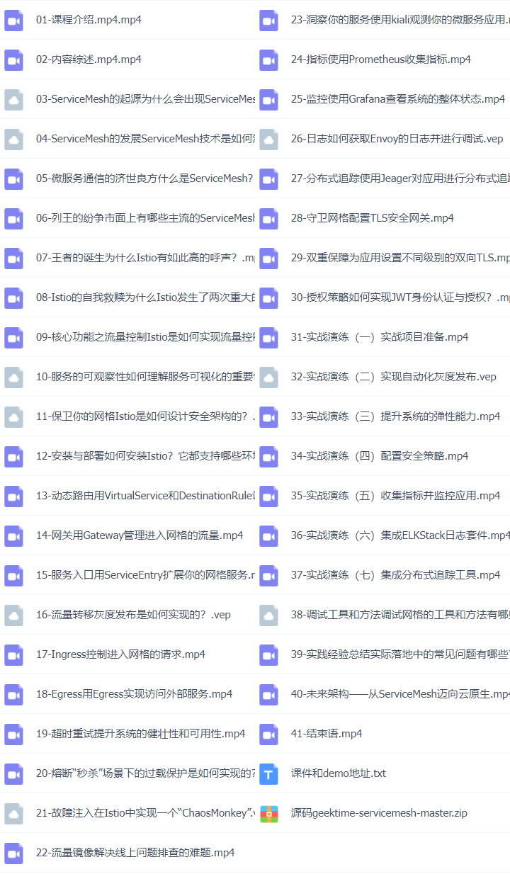 第31套:Service Mesh微服务实战 Service Mesh实践和落地的学习内容视频教程